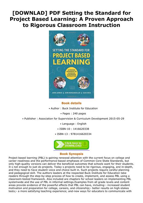 Read Setting the Standard for Project Based Learning A Proven Approach to Rigorous Classroom Instruction Epub By Click Button. Setting the Standard for Project Based Learning A Proven Approach to Rigorous Classroom Instruction it’s easy to recommend a new book category such as Novel, journal, comic, magazin, ect. You see it and you just know that the designer is also an author and understands the challenges involved with having a good book. You can easy klick for detailing book and you can read it online, even you can download it